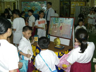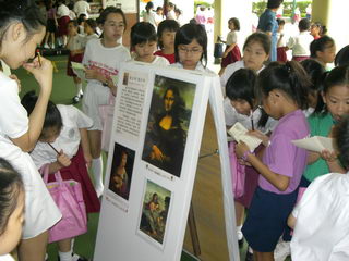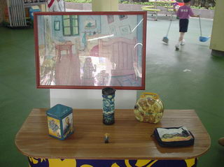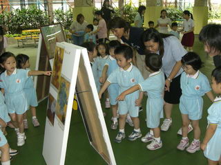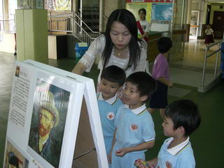 內 容:1. 於早會向學生介紹藝術家生平及其作品的特色; 2. 學生於小息時在有蓋操場欣賞藝術作品; 3. 學生欣賞藝術家卡通; 4. 學生完成工作紙; 5. 學生投票選出最喜愛畫家及作品; 6. 於9/5(星期二)第一次小息邀請宣道會寶湖幼兒學校之 學生到校進行活動。