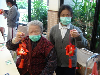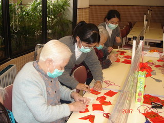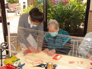 活動名稱:「長幼同心添義彩」計劃 參與團體:東華三院船灣安老綜合中心 活動內容:美化校園組與小女童軍教授長者製作新年飾物 日 期:2007年1月12日(星期五) 時 間:下午3:30至4:45 |