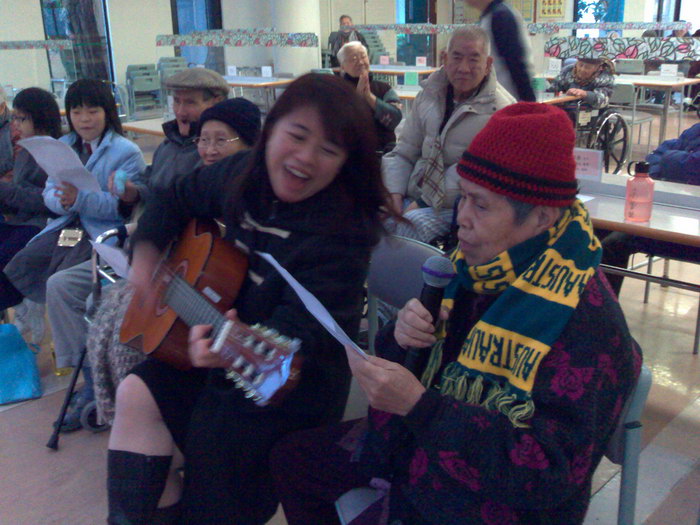 活動內容:1.用結他伴奏齊唱民歌; 2.學生教授長者製作樂器; 3.長幼互動溝通。