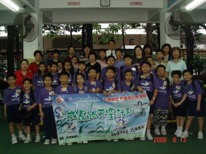 活動名稱:「成長的天空計劃」之再戰營會 目 的:透過各項活動以提升學生的抗逆力。 日 期:2008年6月13日至6月14日(星期五至六) 時 間:1:00p.m.(6月13日)至3:00p.m.(6月14日) 營地地點:西貢白普理營 主辦機構:香港小童群益會 帶隊老師:學生輔導老師吳秀儀姑娘 |