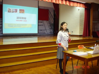 目 的:1.幫助老師辨識具讀寫障礙的學生; 2.幫助老師了解讀寫障礙的評估方法; 3.幫助老師如何改善及提升學生的讀寫能力。