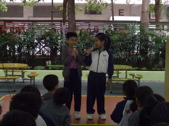 同學們在宣傳聖誕卡設計比賽活動