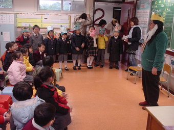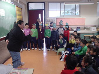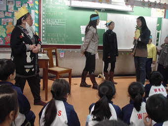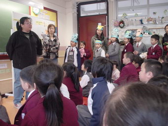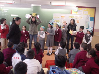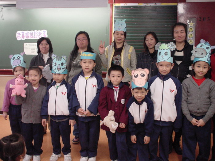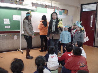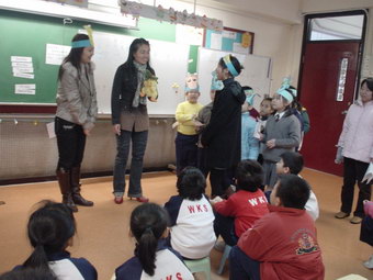 照片說明:貓媽媽、燕子媽媽、芒果媽媽、蘋果媽媽、大眼媽媽、甜甜媽媽和俊媽媽等,於1月和2月 為一至二年級的同學分享了故事《十二生肖的故事》。故事描述民間傳說十二生肖的來源。 媽媽們的分享生動有趣,扮演維妙維肖。同學們沉醉在歡樂的分享中。