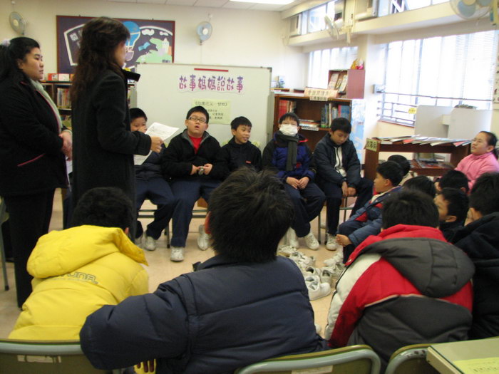 照片說明:彩霞媽媽、兒童媽媽、惠媽媽等,於1月和2月為五年級的同學分享了故事《印度之父甘地》。