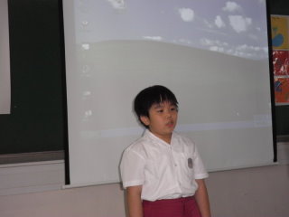 三甲陳學俊及三乙曾梓軒分享自創故事,展示學