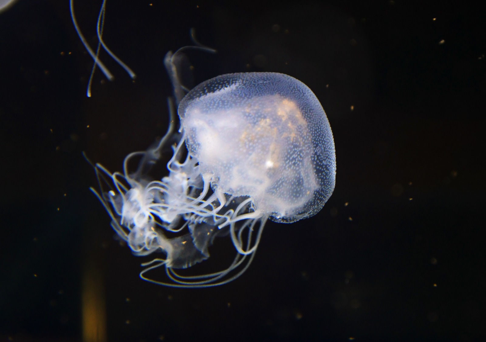 這是學校飼養的大西洋海刺水母,這種水母有輕鬆的「毒素」,飼養時要特別留心。